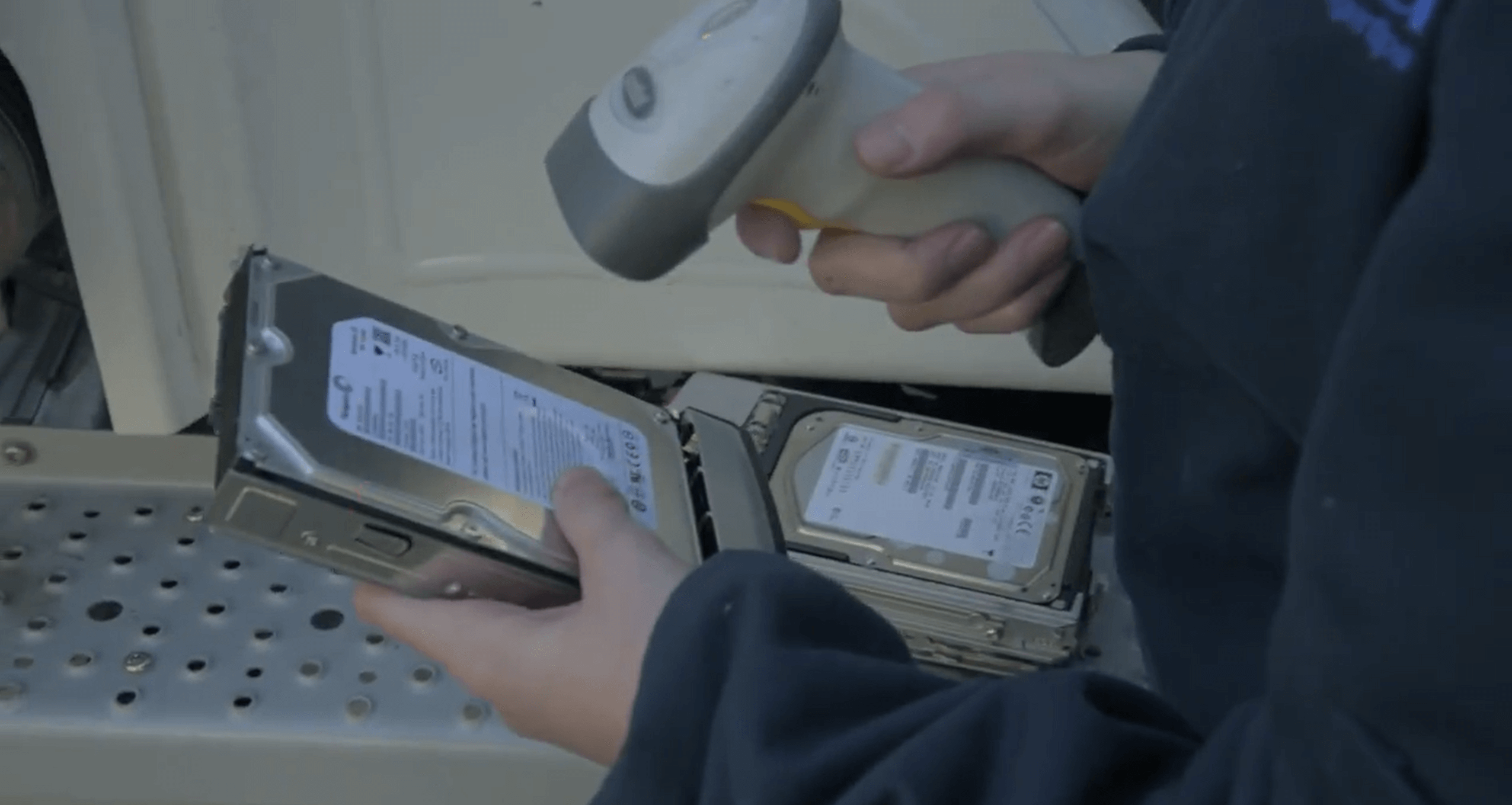 Within four days, Excess Logic provided a crew of 10 people with special tools and equipment, along with a 24-foot truck with a lift gate and pallets to facilitate the decommissioning. While eight Excess Logic technicians were working in the data center dismantling racks, pulling out servers, hard drives, power supplies, data storages, tape subsystems and networking gear, another Excess Logic truck with specialized equipment for physical destruction was positioned in the parking lot to receive and destroy the hard drives. As the more than 2,000 hard drives and pieces of networking equipment were brought out of the building, two Excess Logic specialist captured all serial numbers from the hard drives and physically destroyed them. Doing so, Excess Logic met the bank’s strict policies revolving around the control of their clients’ data.